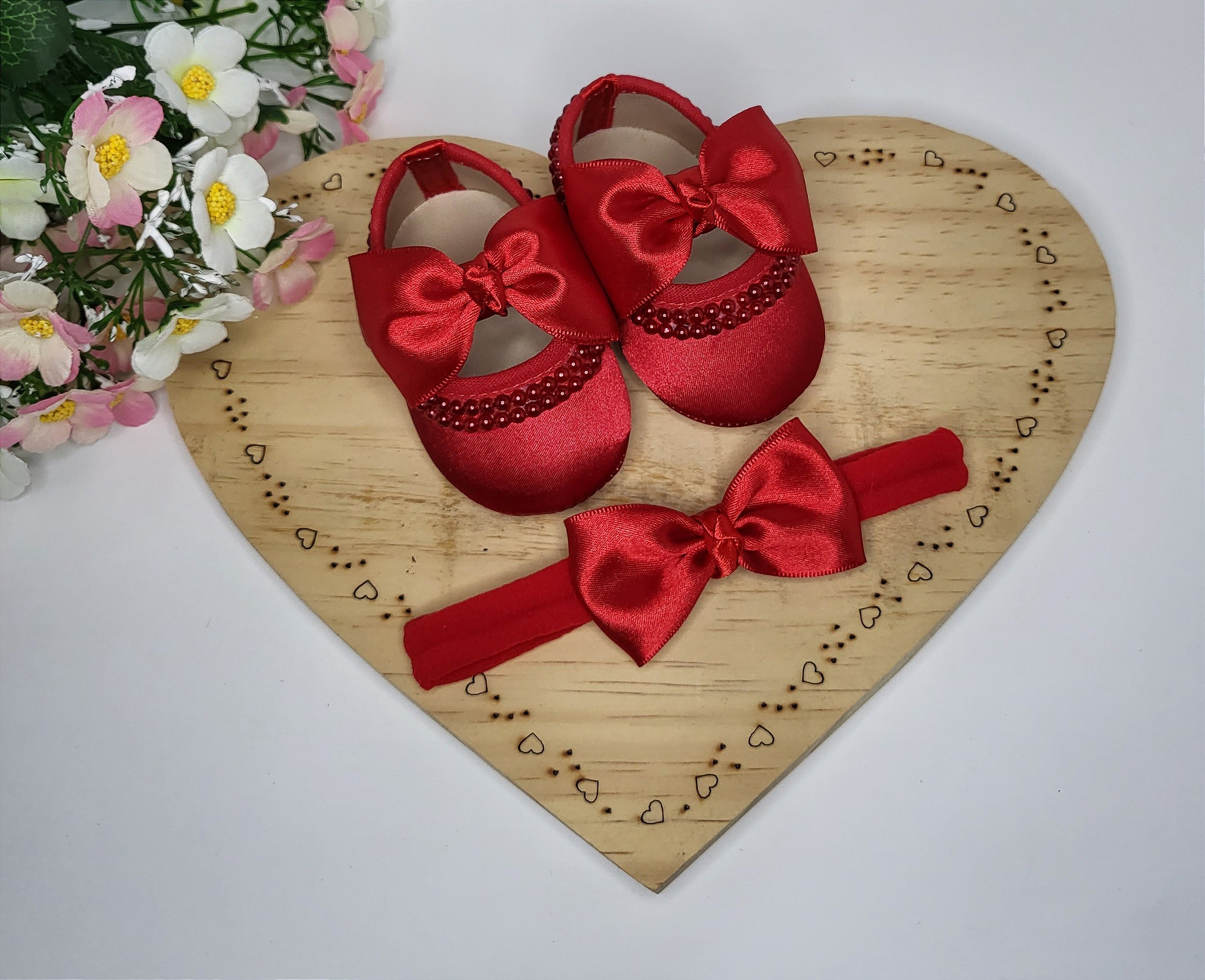 Kit composto de sapatinho e faixa de cabelo com lacinho.